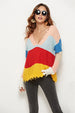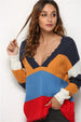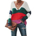 Women's Splicing Sweater V-neck Knitted Sweater