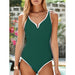 Swimsuit one-piece splicing sexy deep V splicing solid color swimsuit female slim