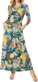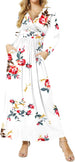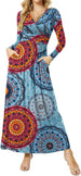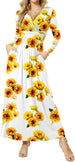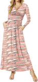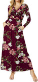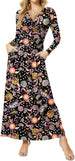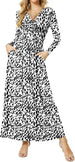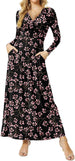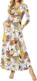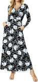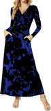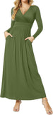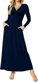 Women's Dresses Deep V-Neck Long Sleeve Empire Waist Long Dress Casual with Pockets