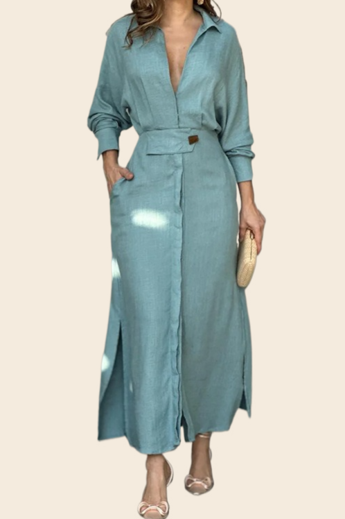 Elegant Solid Color Strap Waist Dress Long Dress