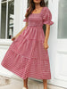 Ladies Plaid Bubble Sleeve Dress